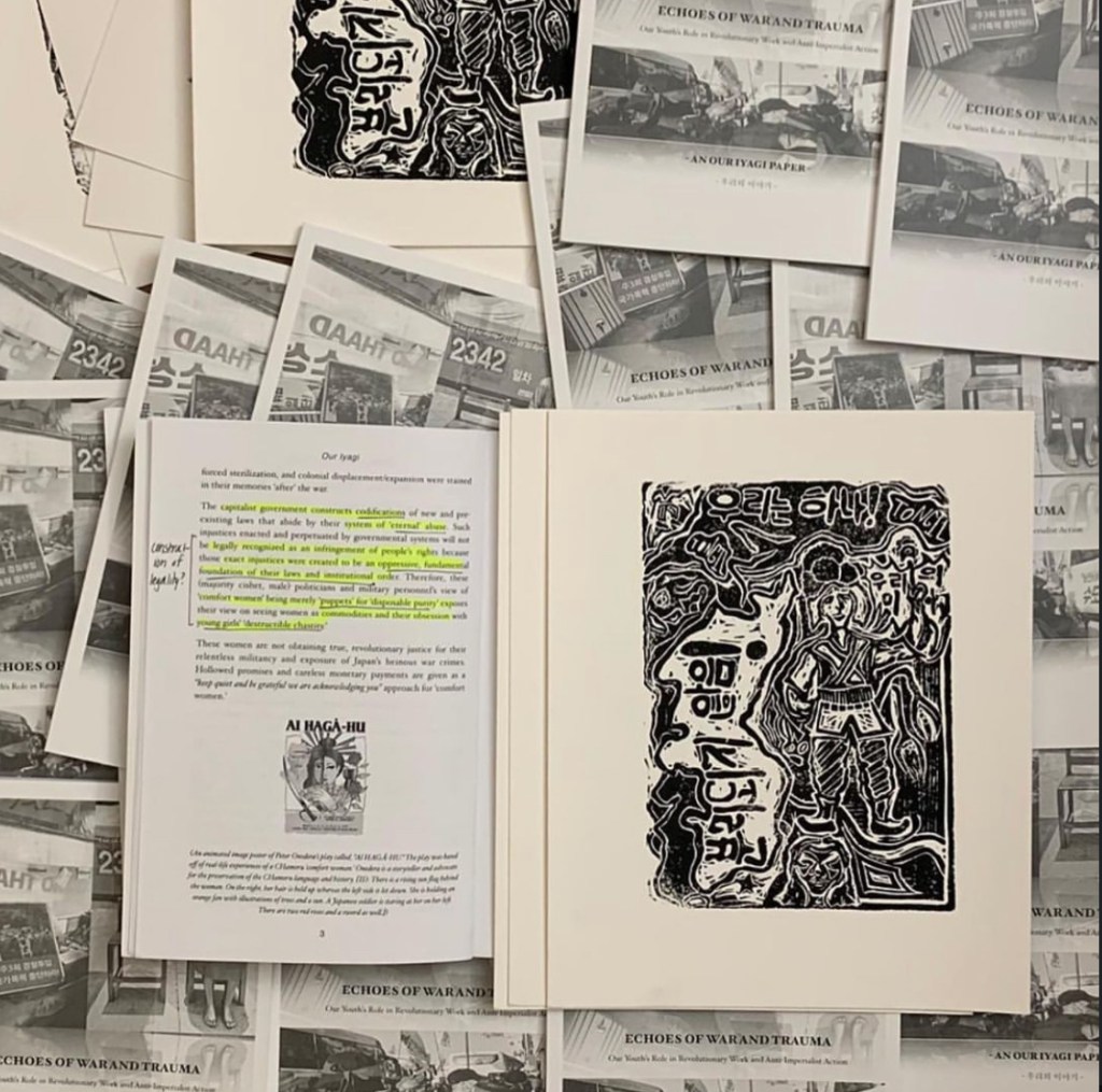 Our Iyagi was able to ship 45+ print copies of Echoes of War and Trauma along with our handmade linoleum block-prints to activists and students across south Korea and the U.S.