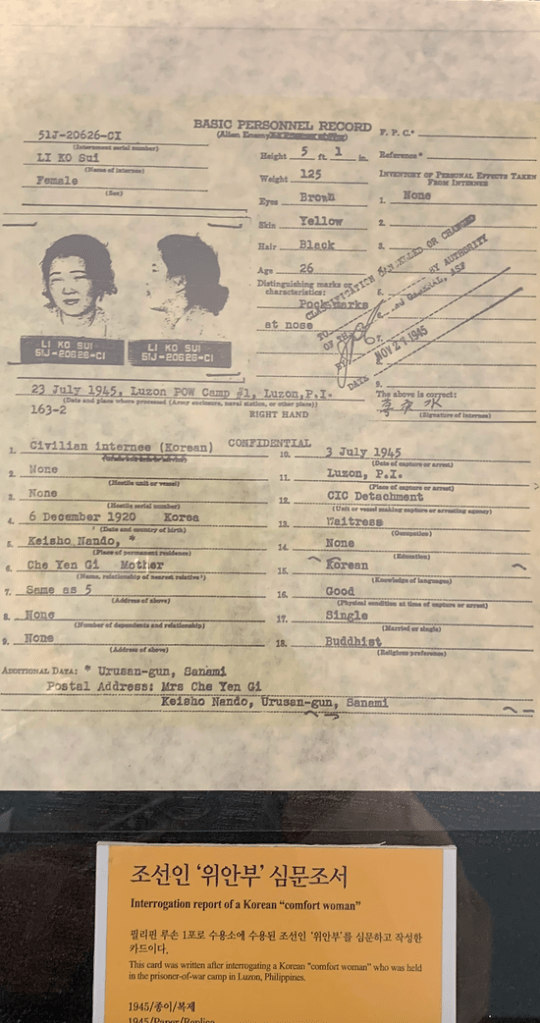 (“INTERROGATION REPORT OF A KOREAN ‘COMFORT WOMEN.’” PHOTO TAKEN IN THE WAR AND WOMEN’S HUMAN RIGHTS MUSEUM)
